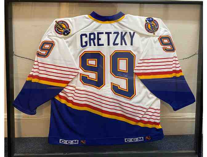 Wayne Gretzky autographed Saint Louis blues jersey, mounted and framed.