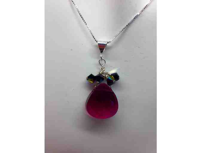 18 inches, sterling Swarovski ruby and black pendant necklace