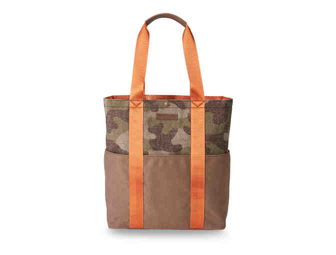 A roomy tote in a durable combination of our woven-in-USA wool and sturdy cotton canvas, with leather trim. Slip pockets outside, one zippered pocket inside. Snap closure. 13"W x 15"H x 4½"D 100% wool, cotton and leather Wool woven in our American mills Spot clean Imported of USA fabric