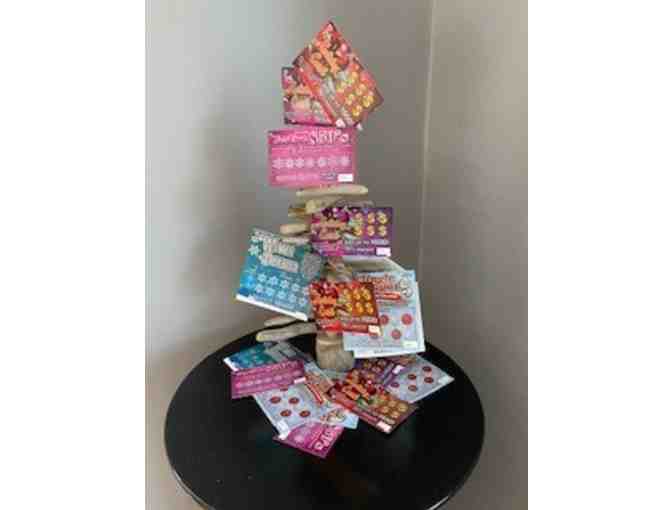 Have someone on your list that's hard to buy for? The Lucky Lotto Tree is the perfect gift! This handmade driftwood tree is covered with $25 worth of Ohio Lottery scratch and win tickets. A fun and festive gift that is truly priceless!