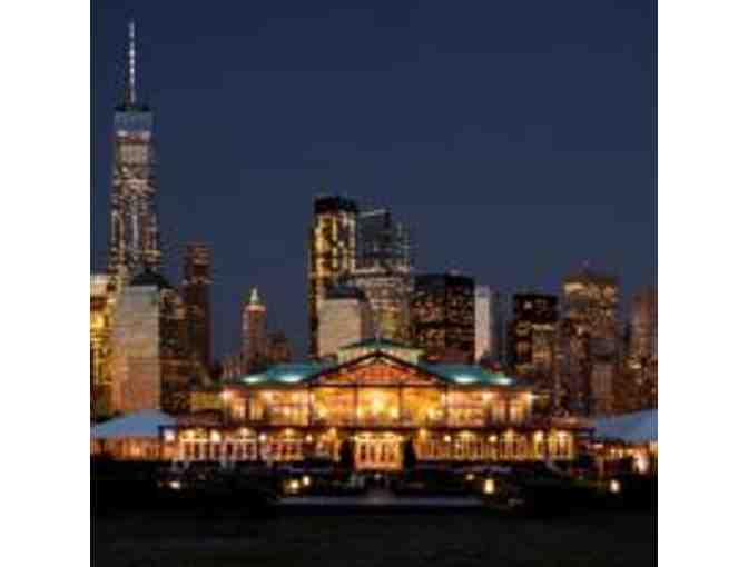 Enjoy a dinner for two at Liberty House with expansive, unobstructed views of the New York City Skyline, the Statue of Liberty, and Ellis Island, as well as the surrounding majesty of the Hudson River.
