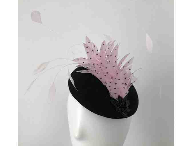 Cocktail Hat made with Felt and Pink Spotted Goose Feathers.