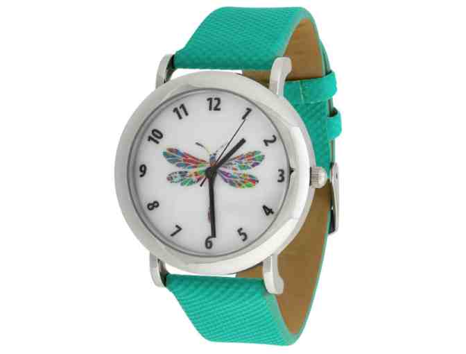 Softly floating through their natural habitat, dragonflies live life at their own pace. A textured, faux leather strap in teal holds this quartz watch in place, making sure you are always right on time!