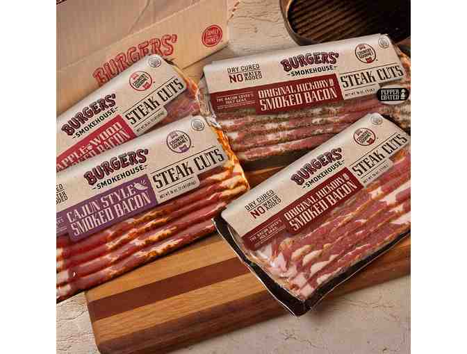 Bacon Steak Sampler including Original, Peppered, Cajun, and Applewood flavors!