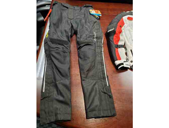 Outer shell constructed in 500D Cordura fabric with Ballistic Airflow mesh panels. Waterproof over or under rain pant. Full size leg zippers extend to waistband. Cool mesh airflow lining. 3M Scotchlite reflecive piping from waist to hem. Two storage pockets. 8" connecting zipper for jackets.