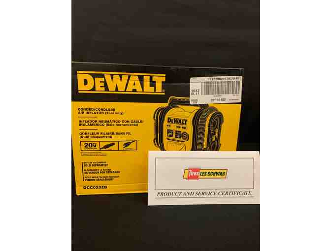 Make sure your vehicle is riding right with this gift certificate from Les Schwab for a free alignment valued up to $110. In addition, this package also includes a DeWalt 20V MAX* Corded/Cordless Air Inflator that can run on any one of three power sources for maximum versatility: 20V MAX* battery, 12V DC, or 110V AC. Use it at home, on the jobsite, or on the go. It features a high-pressure rubber hose for durability.