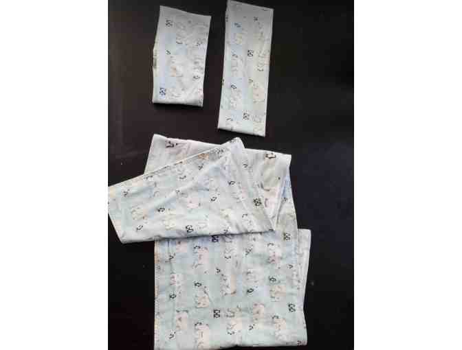 The people scarf is glitter cotton polar bears with flannel polar bear backing.
