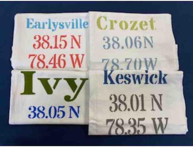 Enjoy these beautiful Low Country Linen 100% Cotton Flour Sack dishtowels valued at $20 per dishtowel. Enjoy regional elegance featuring Keswick, Crozet, Earlysville and Ivy