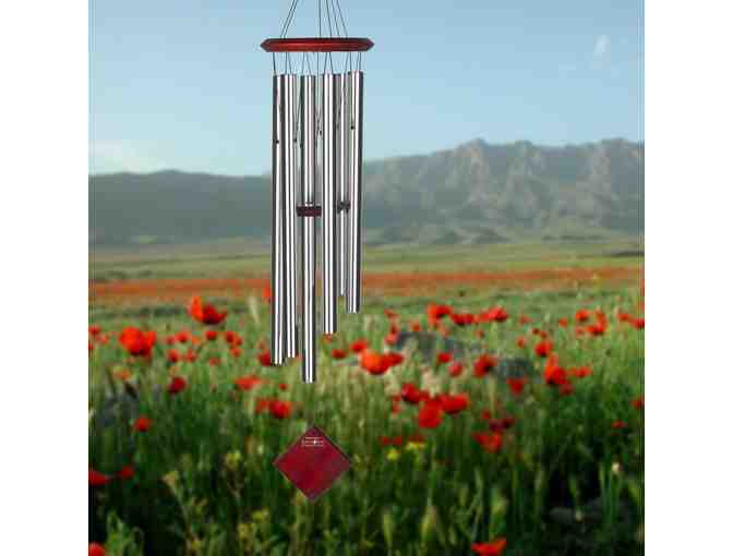 This large Woodstock Wind Chime is designed and handcrafted for superior musical performance. It is hand-tuned to a universal, pentatonic (five-note) scale and acts in concert with the wind to create random patterns of wonderful sound. Chimes are made with 6 aluminum tubes and overall length measures 37" with a diameter of 7".