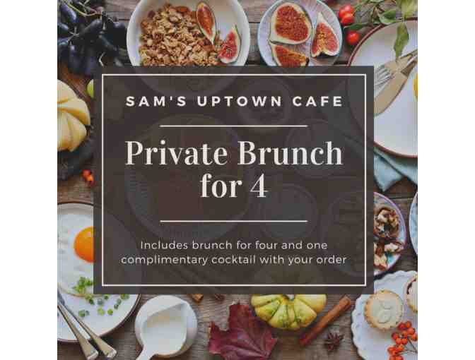 Join one of Charleston's favorite brunch spots, Sam's Uptown Cafe, for a private brunch for 4. This includes brunch for four people and one complimentary cocktail with your order.