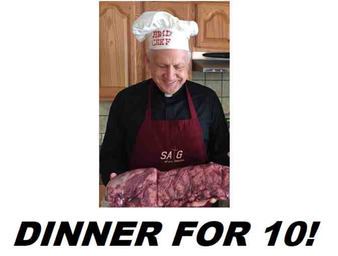 Fr. Chris will host a dinner for 10 at the Saint Albert the Great Rectory. The menu will include a 9oz Beef Filet, sautéed Burgundy Mushrooms, Green Bean Casserole, Potato Casserole, Rolls, Dessert (Fr. Chris’ famous - hot Chocolate Chip cookies and ice cream). Hors d’oeuvres, Wine, and great company included.