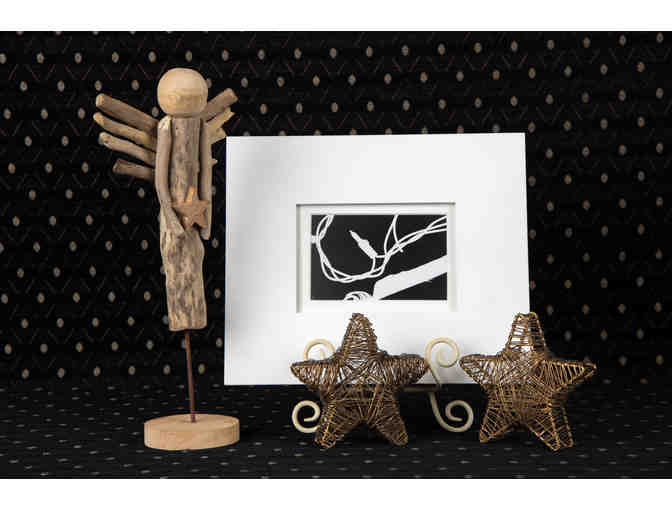 This unusual display of reverse light picture, wooden angel and stars could stay up all year long.