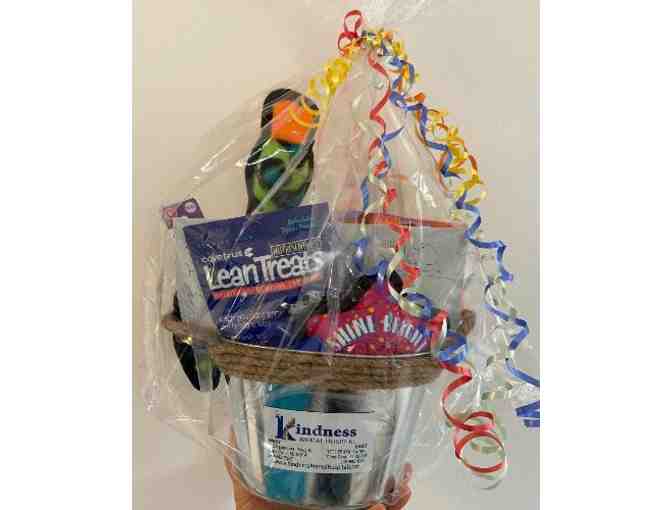 You are bidding on a Gift Basket filled with Dog and Cat toys, Dog Treats, Catnip, Food Bowls and a $100 gift Card good for any products or services!!!!