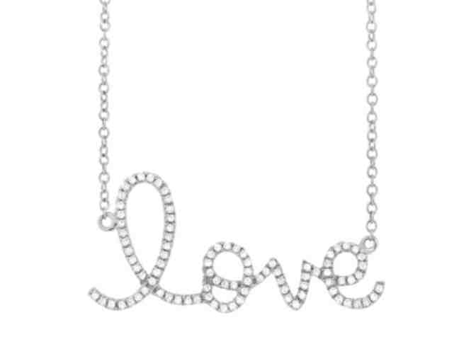 Brighten up your day with this exquisite necklace made of 0.18 ct diamond, 14K white gold and spread the message of love. The necklace measures 1.10” L and 0.50” W for pendant