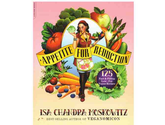 from the cover:  "This is not your mother's low-fat cookbook. There's no foolish tricks, no bizarre concoctions, no chemicals, no frozen meals...no fake anything! Appetite for Reduction means cooking with real food, for real life. (Skimpy portions need not apply.)