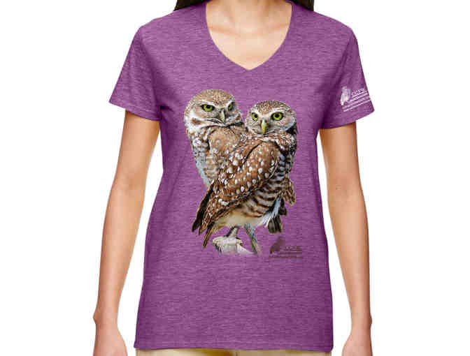 Burrowing Owl Pair - Ladies V Neck in Radiant Orchid
