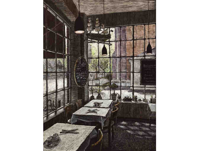 ICM board member and Coralville-based artist John Martinek presents this beautiful Giclee print of his piece "Devotay" which pays tribute to one of Iowa City's most beloved restaurants. This high-quality print, created from the original drawing, is printed with archival inks and paper. Image size is 9" x 12" and overall paper size is 14" x 16".
