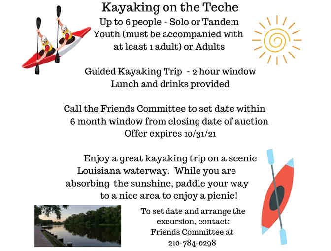 Kayaking on the Teche for up to 6 people - Solo or Tandem, Youth (Must be accompanied by at least 1 adult) or Adults