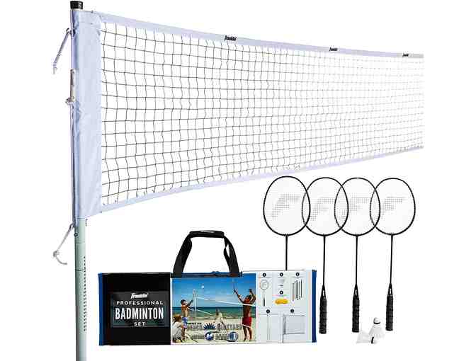 Fun for everyone This go-to complete Franklin Sports badminton set is a classic sport that can be enjoyed by all ages. This Badminton set includes all that you need for a day outside. Accessories are all included: 4 aluminum badminton rackets, 2 nylon birdies, 6 stakes and ropes, and deluxe carry bag.