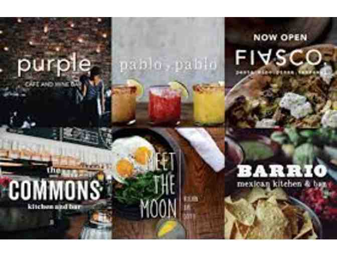 A $50 gift card to spend at any Heavy Restaurant Group establishment. Valid at Purple, Barrio, Lot No. 3, Meet the Moon, Claret, Pablo y Pablo, and The Commons.