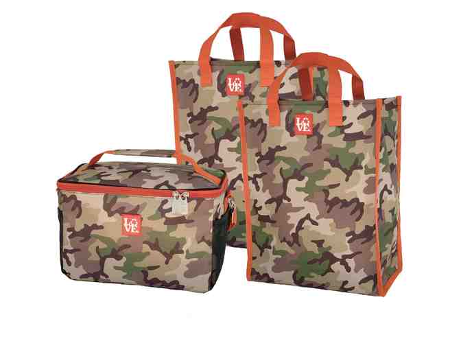 he centerpiece of the LOVE Reusable Bags line is the CHILL SET. This 3 bags in 1 set includes an insulated thermal cooler with two sturdy, reusable and washable shopping bags that hold up to 60 lbs. each. The cooler is designed with side mesh pockets for storage and an adjustable shoulder strap for comfort. The two shopping totes inside STAND UP on their own for easy loading and unloading. Fashion meets function and built to last... this is the set you’ll never forget.