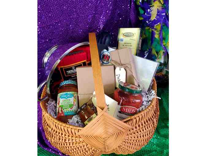 This basket includes everything you'll need for pasta night at home! Includes pasta, sauce, collander, large platter, kitchen towels, serving utensils, breadsticks, and a copy of "The America's Test Kitchen Quick Family Cookbook".
