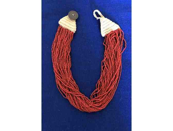 Add some sustainable fashion to your accessories drawer with a gorgeous chunky necklace in classic salmon tones.