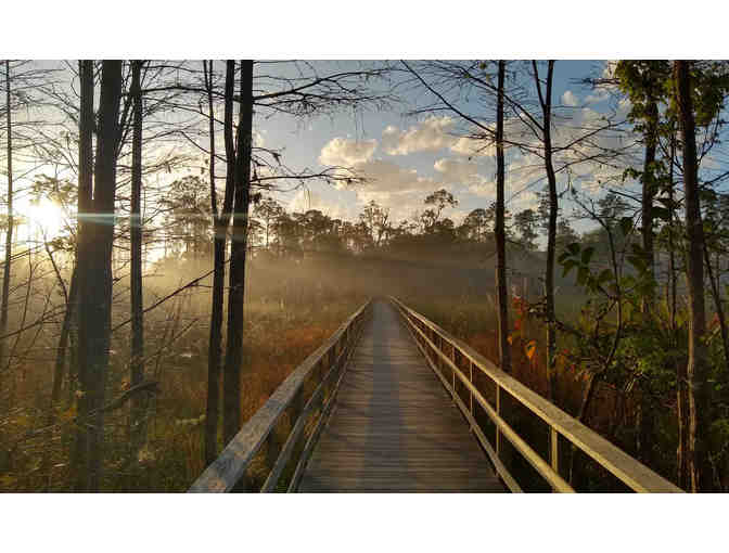 Corkscrew Swamp Sanctuary occupies approximately 13,000 acres in the heart of the Corkscrew Watershed in Southwest Florida, part of the Western Everglades. It is primarily composed of wetlands. These include the largest remaining virgin bald cypress forest in the world (approximately 700 acres), which is the site of the largest nesting colony of Federally Endangered Wood Storks in the nation. In addition to the Wood Stork, Corkscrew provides important habitat for numerous other Federal and State listed species, including the Florida Panther, American Alligator, Gopher Tortoise, Florida Sandhill Crane, Limpkin, Roseate Spoonbill, Snowy Egret, Tricolored Heron, White Ibis, Big Cypress Fox Squirrel and the Florida Black Bear. Several rare plants are also found here, most notably the Ghost Orchid.