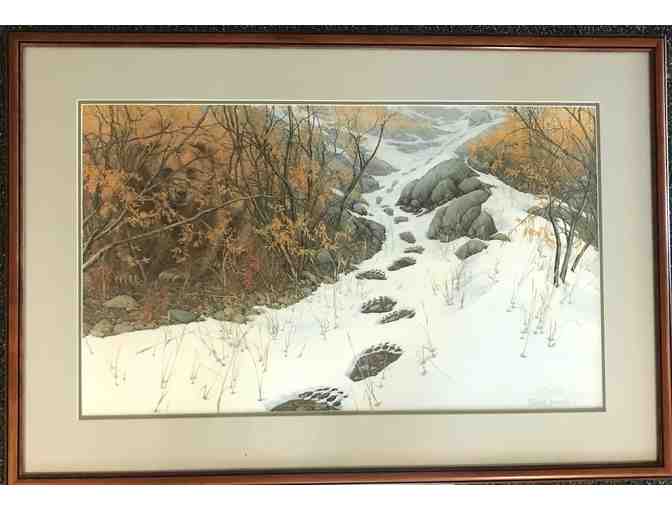 Professional framed and signed. size framed: 26 1/2 by 39 inches Bear