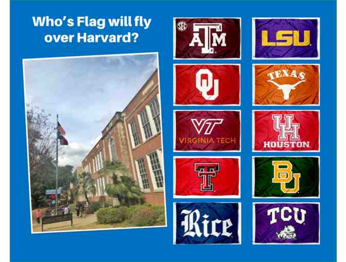 Let your college spirit soar and see the flag of your alma mater flying high at Harvard Elementary. The highest bidder or group of bidders wins the right to raise a college flag on the Harvard Flag pole.