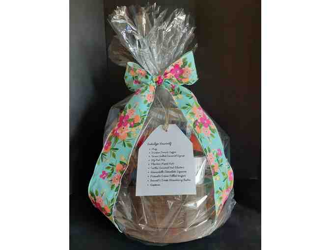 Mug, Dunkin Donuts Coffee, Torani Salted Caramel Syrup, Utz Pub Mix, Planters Mixed Nuts, Turtles Caramel Nut Clusters, Ghiradelli Chocolate Square, Pirouette Creme Filled Wafer, Bennett's Creek Strawberry Butter & Napkins