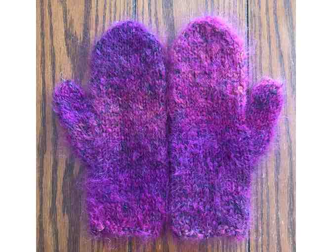 Beautifully handknit soft, mohair, mittens by Lynn McCarthy.