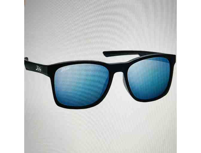 Hobie Eyewear Sandcut Sunglasses. Sand Cut Satin Black Frame/Grey/Cobalt Mirror.