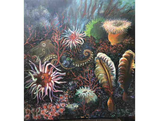 Item description: "My Lovely World" 24" square oil painting on canvas.