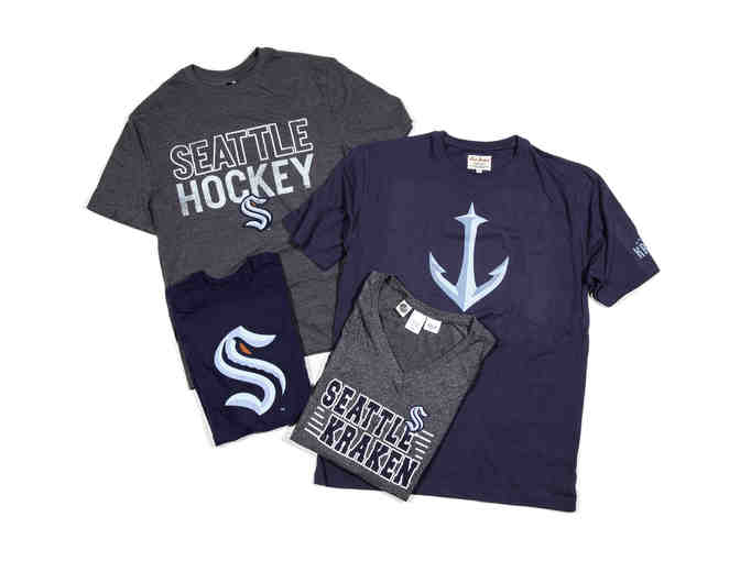 A set of Kracken t-shirts for the whole family! Sizes: Men's XL, Women's L, Men's M, and Youth L.