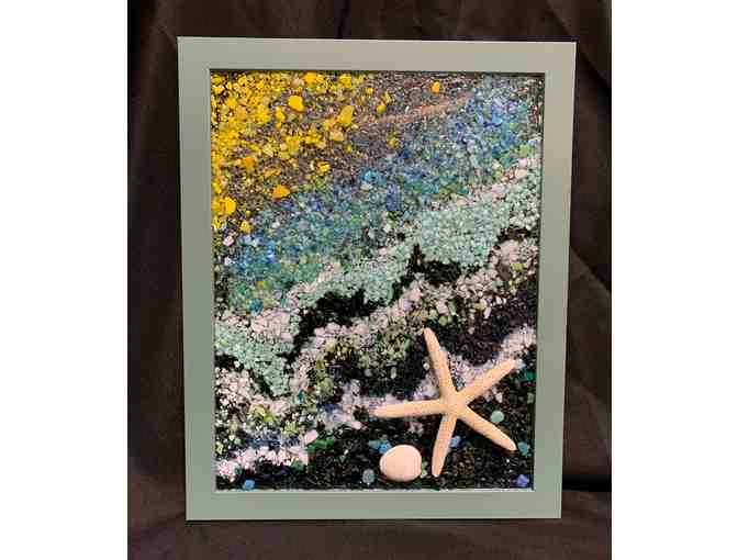 Seafoam Green Framed Stained Glass Beach Scene - by artist Fran Newman