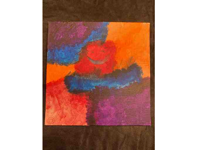 Item description: 8” x 8”. Acrylic paint. Artist Caroline Latour, age 14, who suffers from a cavernous malformation, painted this the day she was hoping to get discharged from the hospital but wasn’t so she was sad. So her art from that day reflects sadness but an effort to keep her spirits up, as she painted a smile to cheer herself up.