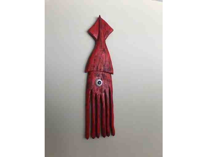 Add some fun to your home, office or summer camp décor with this hand-carved and painted Squid. Approximately 36" long and 9" wide this joyful piece was created by local artisit, Jon Strom