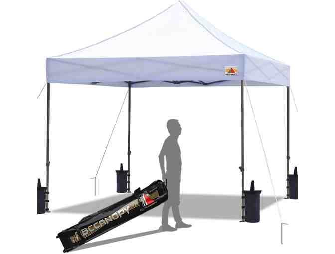 Pop up Canopy Tent Commercial Instant Shelter with wheeled carry bag, 4 canopy sand bags; 10'x10' (White). Perfect tent for outdoor sports, event, festival, flea market, party, beach, or playground. Easy to set up with only two people. Roller bag for easy portability and light transportation. Heavy duty wheels glide smooth. Includes 4 stakes & ropes for stable and sturdy use.