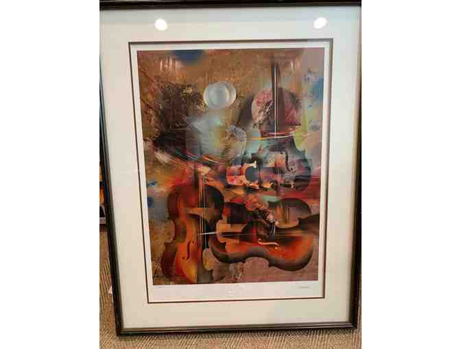 Size: 25x33. Slight wearing to the frame but matting and art work are perfect.