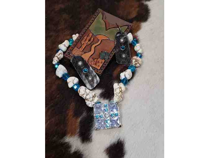 Necklace valued at $40, Earrings at $20, Phone card pocket valued at $40
