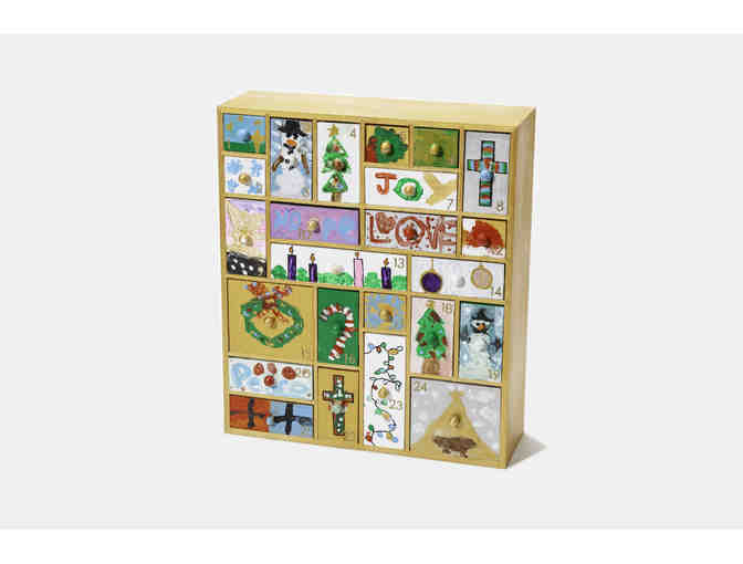 Counting down the days until Christmas and the birth of Jesus has never been so fun! Hide surprises or messages in each of the 24 boxes specially hand-painted and autographed by one of the 2nd graders from Mrs. Oines’ class. This Advent Calendar will inspire new family traditions and bring extra holiday joy to see the students’ creativity shine. Bonus: It comes with 2 photo collages that captured each student with their painted box. This can be displayed on the back of the calendar or separately framed as you choose. Size of box is 15"h x 13.5"w x 5"d