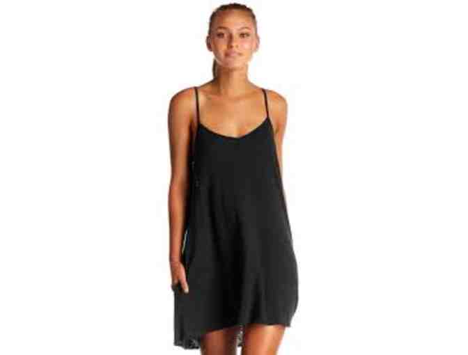 A complete no brainer, the Vitamin A Paloma Knit Mini Dress in Black is an easy slip on dress that will become your summertime staple. The chic little black dress features a low neckline with spaghetti straps, built in pockets and strappy back detail with low open back. Made of Recycled Cotton and Tencel.