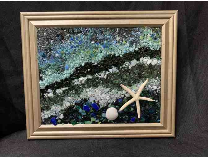 Stained Glass Beach Scene (Gold Frame) - Donated by Fran Newman