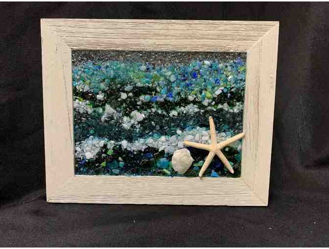 Stained Glass Beach Scene (White frame) - Donated by Fran Newman