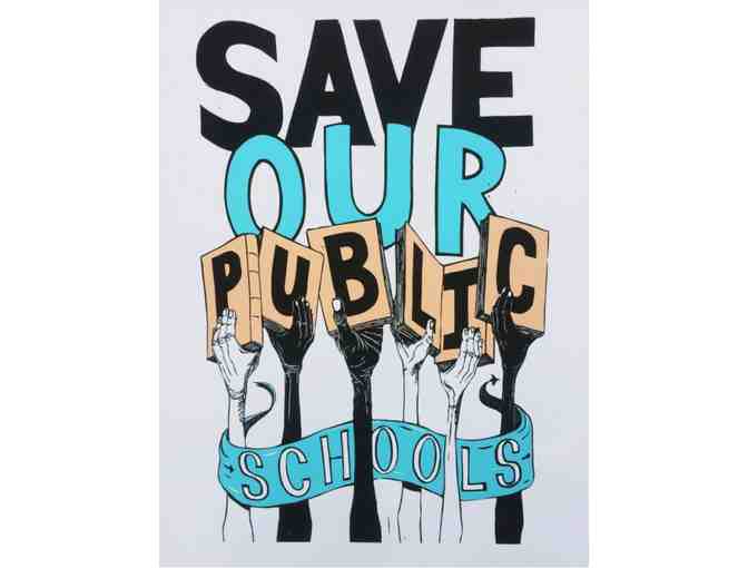Save Our Public Schools by Pete Railand was created for an Art Build organized by MTEA (Milwaukee Teachers' Education Association) the union for K-12 teachers in the Milwaukee Public Schools district.