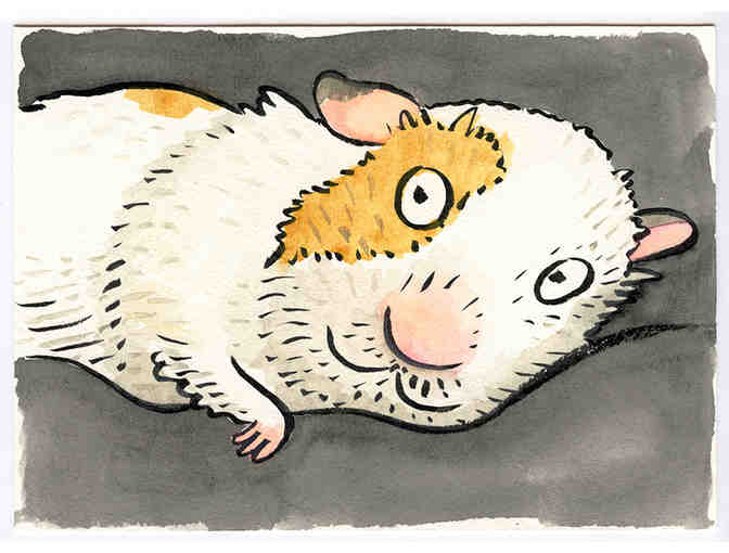 Immortalize your fur baby with a custom pet portrait from artist Sara Varon. Portrait will be 5" x 7" in ink and watercolor.