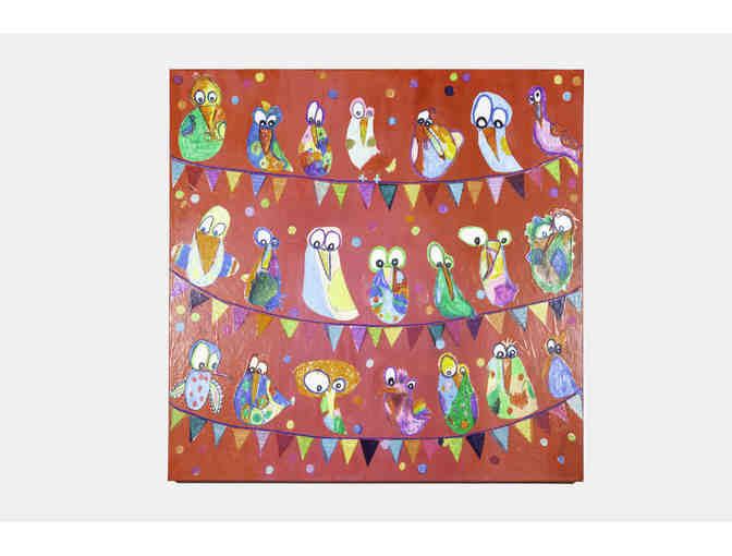 Miss Murray's kindergarten class creatively came up with their own feathery big-eyed oil pastel bird creations. Together these hand colored birds and their song is perfection sitting on an amazing 36x36 canvas that will fill your home with joy.