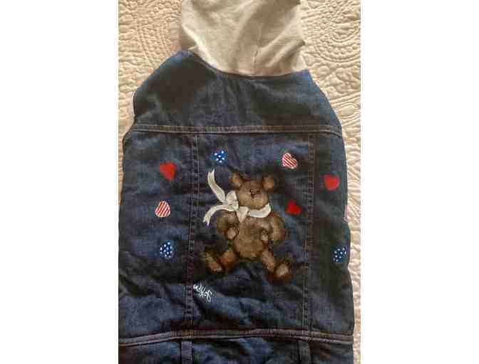 Unique Hand painted one of a kind fur lined denim dog vest with velcro closure Size Large