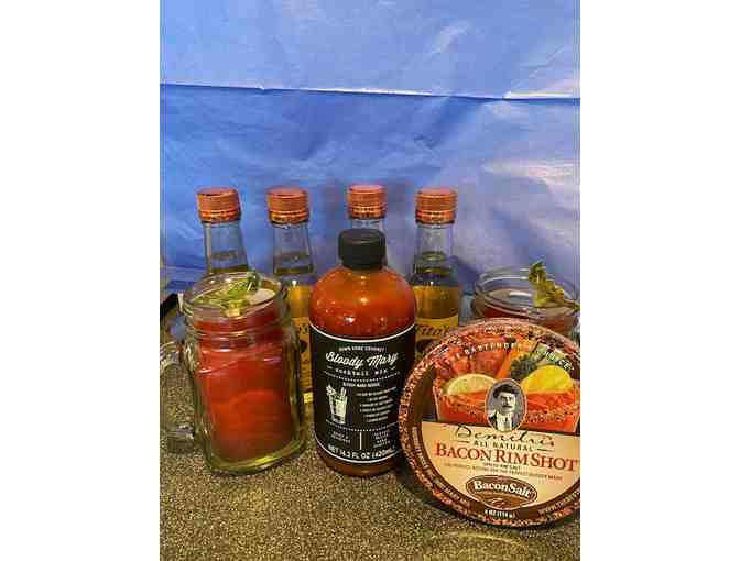 Package includes two Mason Jars, Bloody Mary Mix, Demitri's Bacon Rim Shot, spiced rim salt, and four 200ml mini Tito's bottles.